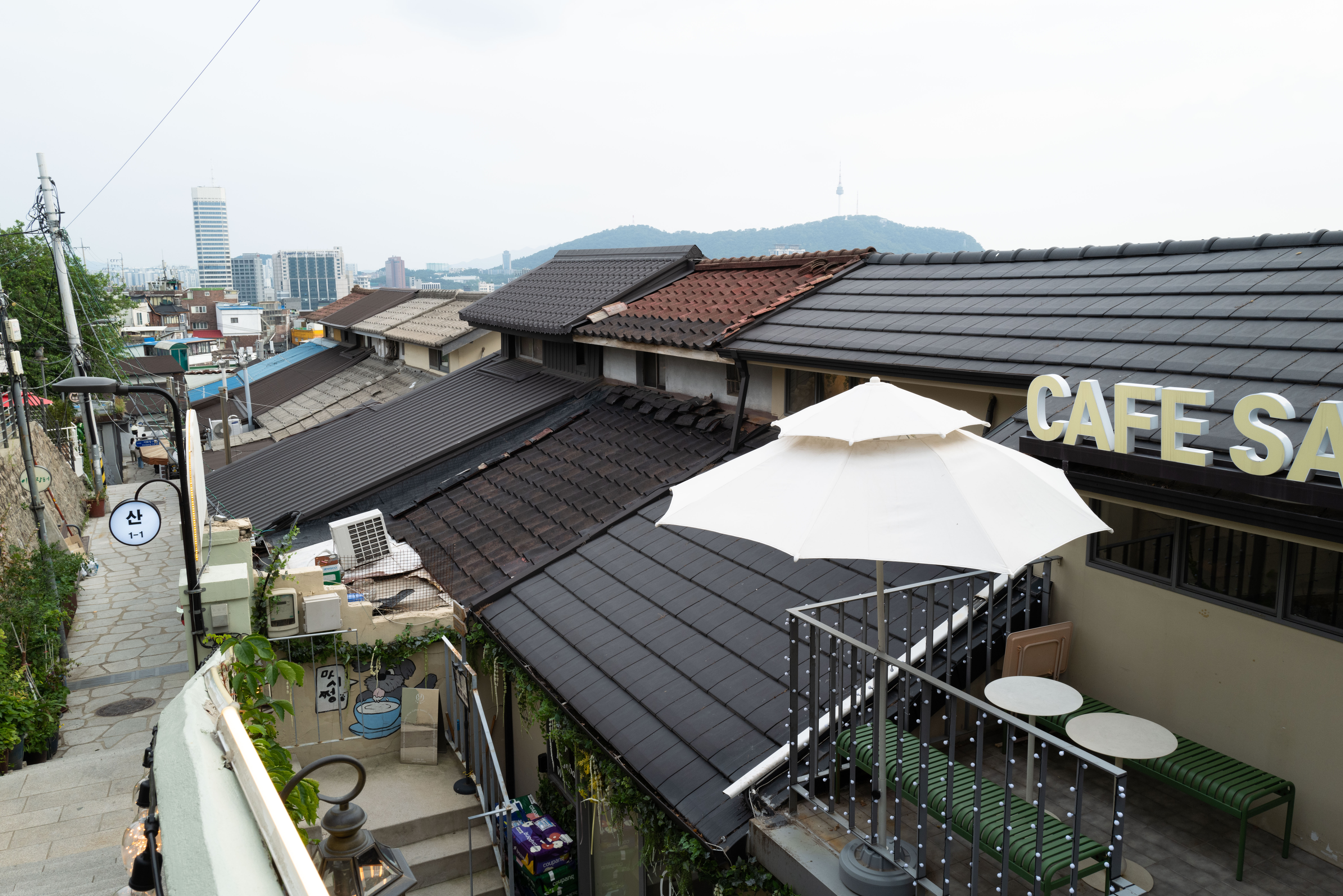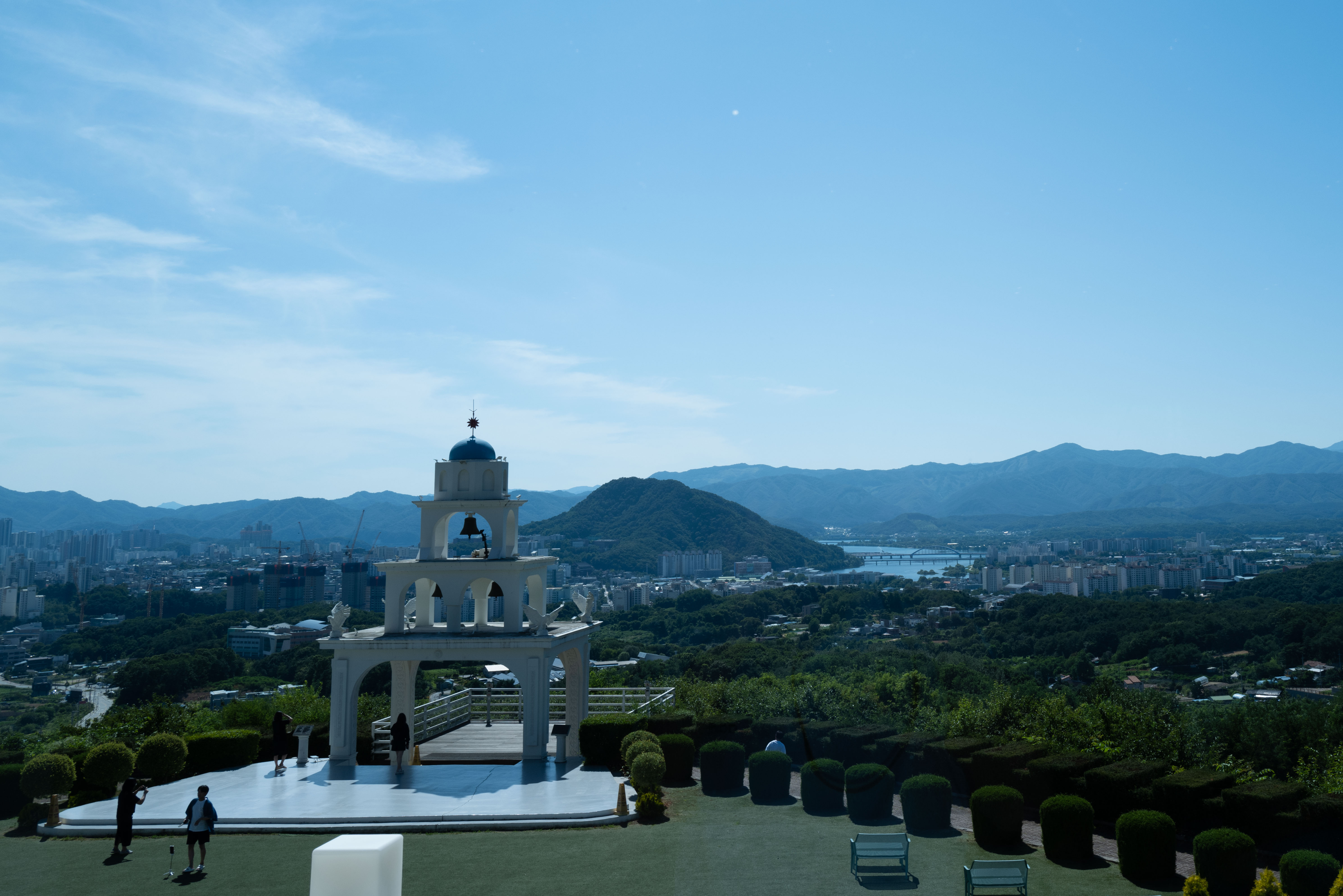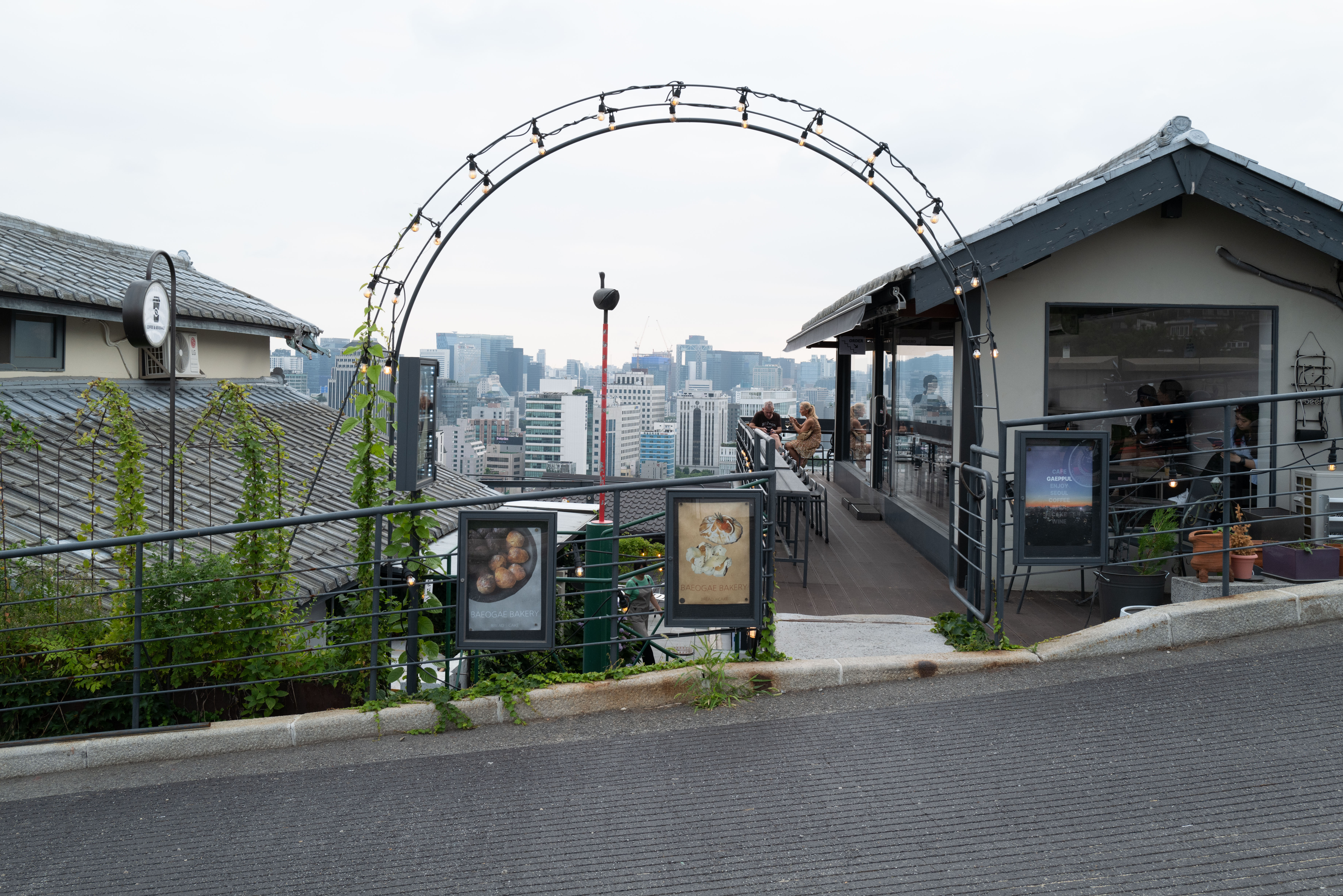 박물관을 나와 우리가 향한 곳은 산토리니 카페였다. 그리스 풍의 외관과 넓은 공간이 인상 적이었다. 주문을 마치고 2층으로 올라가니 한여름의 뜨거운 햇살이 들이 쳤다. 그 너머로 펼쳐진 풍경은 어디에서 본듯한 풍경이 이었다.