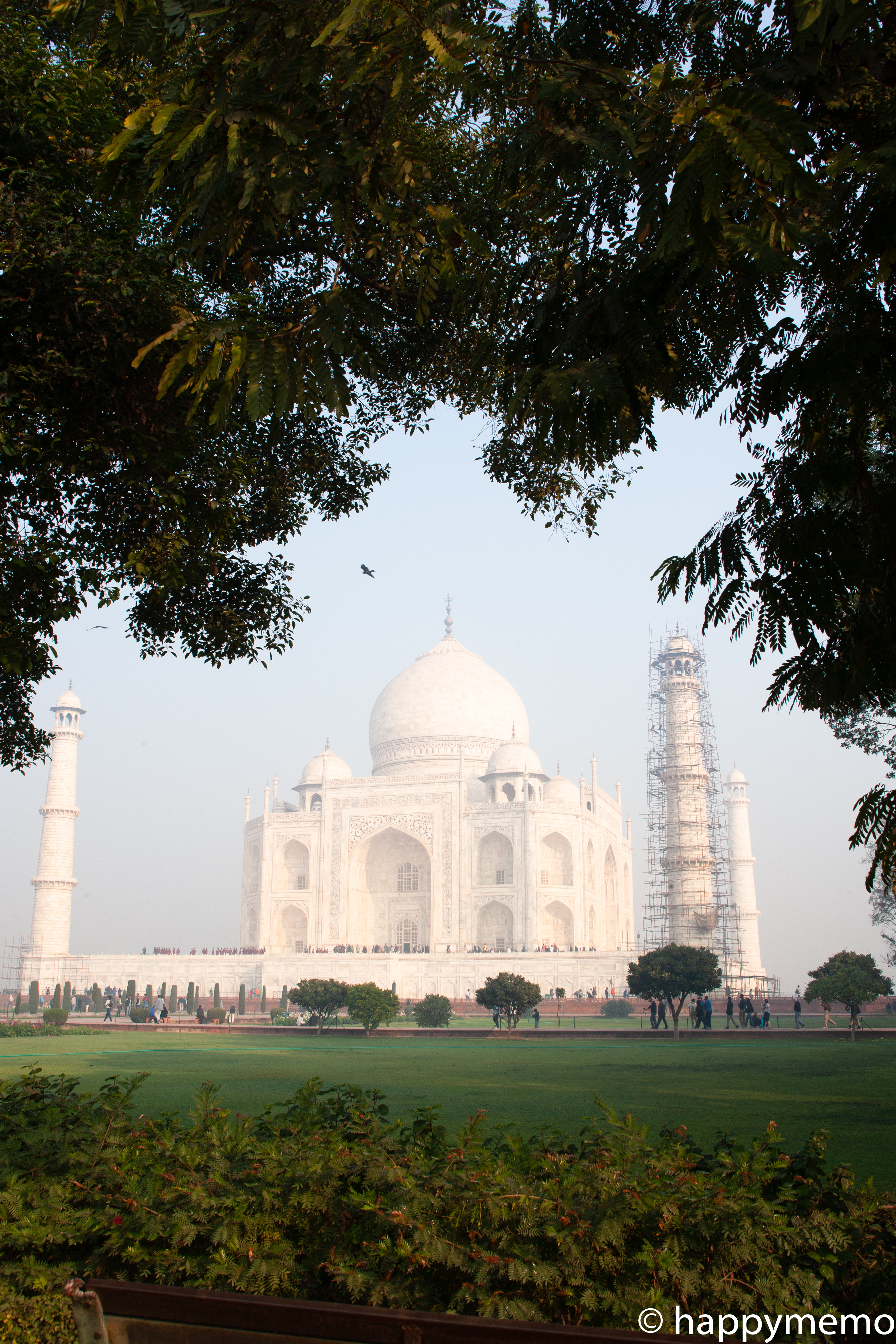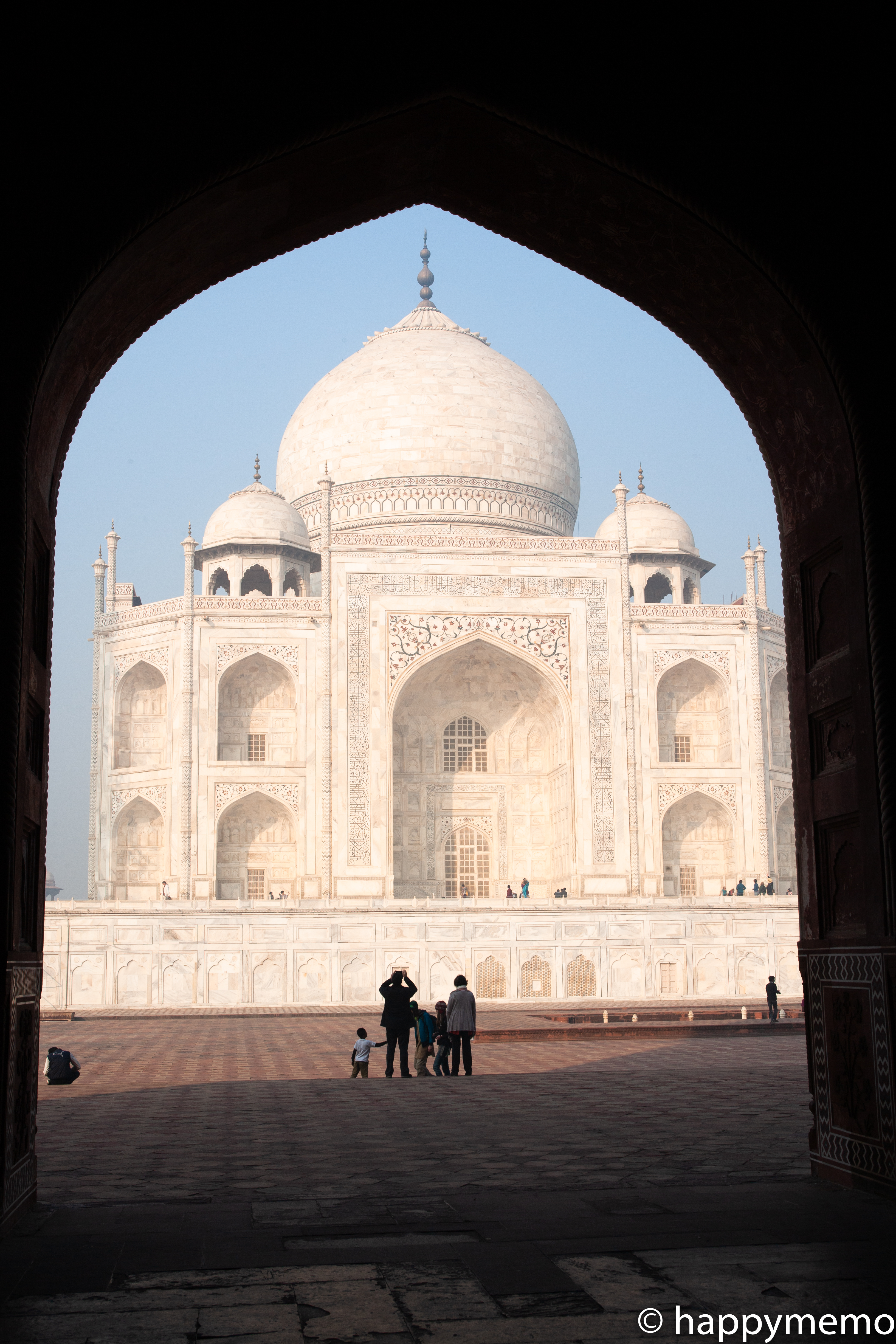 첫번째 방문 때 일정에 쫗겨 여러 모습의 타지마할을 담지 못했다. 차를 대절해서 가족과 함께 왔기에 시간적 여유가 많았다. 여러 모습의 타지 마할을 카메라에 담았다. 입구에서 본 타지마할 모습이다.